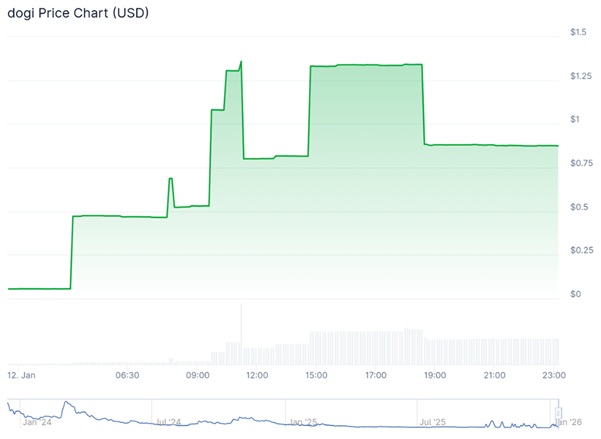 Según los datos en tiempo real de CoinGecko, DOGI ha experimentado un aumento vertiginoso: su precio ha pasado de $0.053805 a $1.36 en su punto más alto.