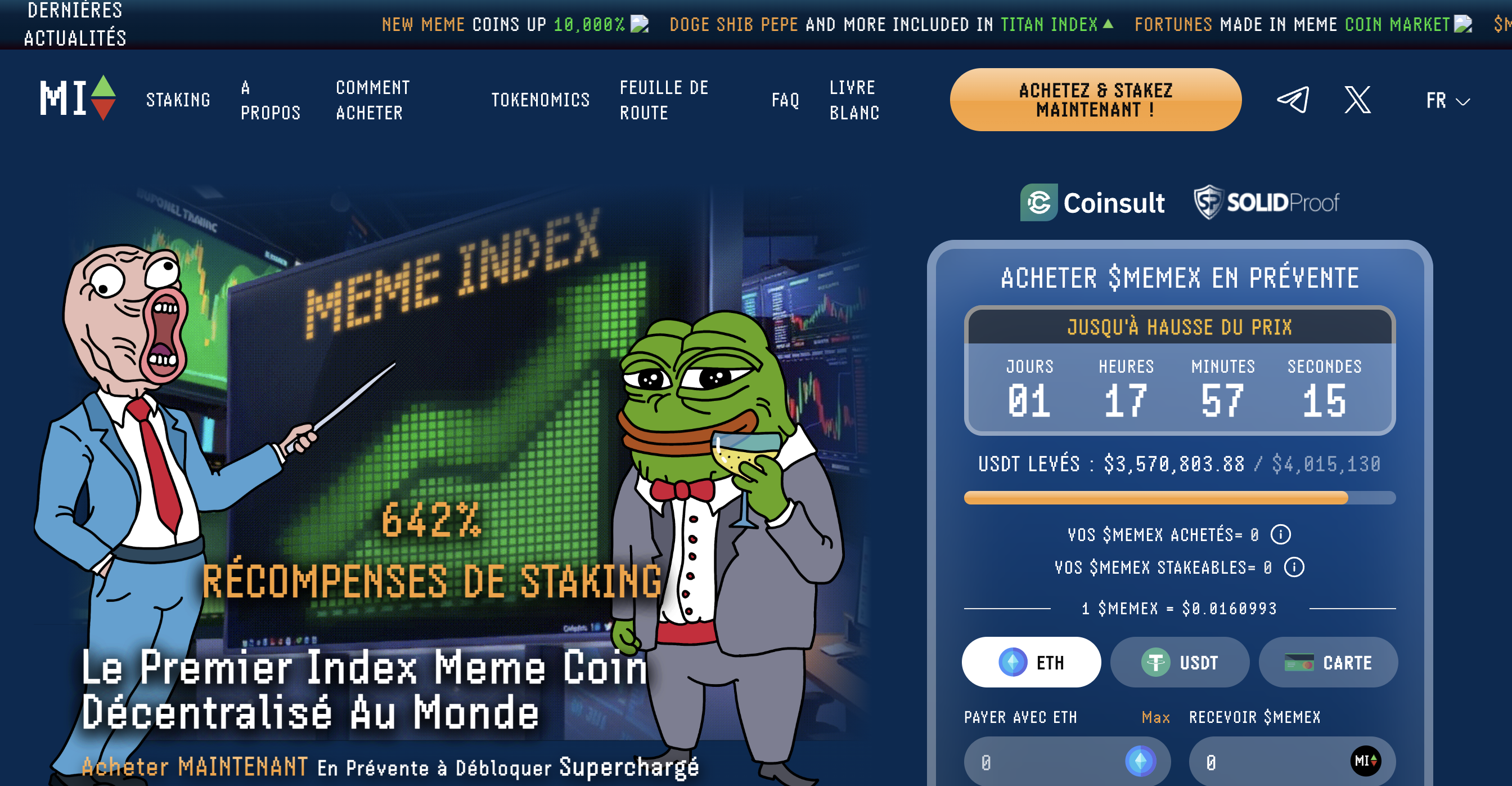 Actualmente disponible en preventa, el proyecto ya ha logrado recaudar más de 3 millones de dólares. El token $MEMEX está disponible al precio de 1 $MEMEX = 0.0160993. En detalle, el proyecto $MEMEX es una plataforma diseñada para analizar y seguir el mercado de los tokens de memes.