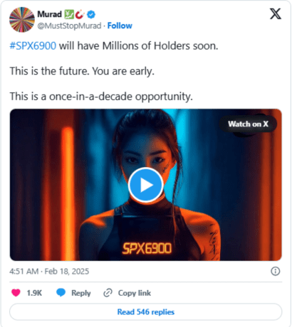 Por ejemplo, cree que SPX6900 ($SPX) tiene todas las papeletas para experimentar una fuerte tendencia alcista y podría alcanzar pronto el millón de holders. Esto podría hacer que su precio aumente considerablemente.