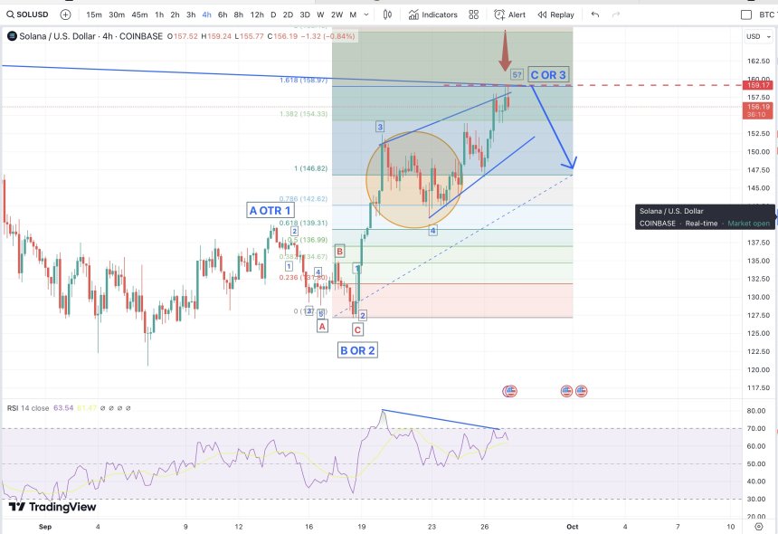 El viernes, Solana rompió por encima del nivel de resistencia crucial por primera vez en un mes, alcanzando los $160 por primera vez desde finales de agosto. En el momento de escribir este artículo, SOL alcanzó un máximo diario de $160,68, manteniendo momentáneamente el nivel clave.