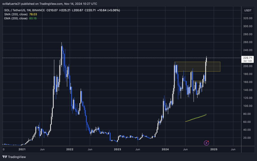 Solana rompió recientemente su máximo anual en 210 dólares, lo que provocó un aumento en la actividad comercial, ya que la altcoin ahora intenta consolidarse por encima de este nivel clave. Este período de acción volátil del precio destaca la sólida posición de Solana en el mercado, mientras los inversores buscan señales de una ruptura mayor.