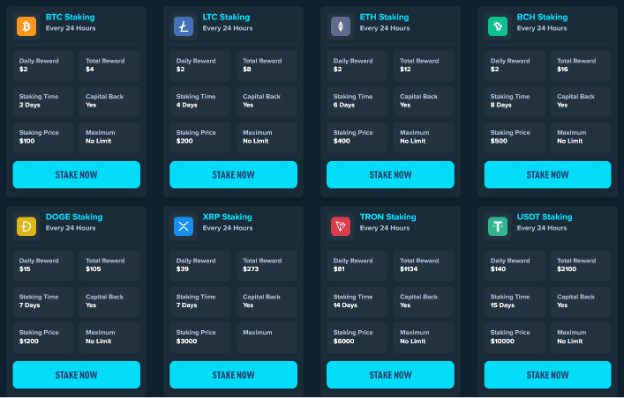 Each staking plan has a different staking time and daily reward. The reward will payout every 24 hours. Users can choose based on their own investment goals and risk tolerance.