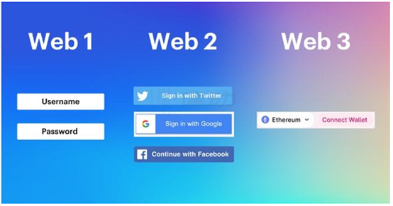 Figure 3: Web 1.0, Web2.0, and Web 3.0 identity systems development