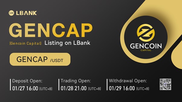INTERNET CITY, DUBAI, Jan. 21, 2022 – LBank Exchange, a global digital asset trading platform, will list Gencoin Capital (GENCAP) on January 28, 2022. For all users of LBank Exchange, the GENCAP/USDT trading pair will be officially available for trading at 18:00 (UTC+8) on January 28, 2022.