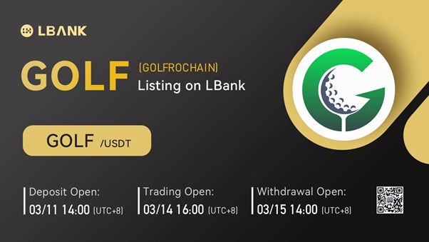 INTERNET CITY, DUBAI, Mar. 10, 2022 – LBank Exchange, a global digital asset trading platform, will list Golfrochain (GOLF) on March 14, 2022. For all users of LBank Exchange, the GOLF/USDT trading pair will be officially available for trading at 16:00 (UTC+8) on March 14, 2022.