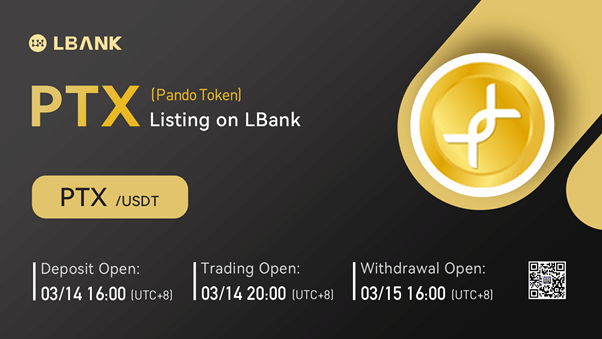 INTERNET CITY, DUBAI, Mar. 8, 2022 – LBank Exchange, a global digital asset trading platform, will list Pando Token (PTX) on March 14, 2022. For all users of LBank Exchange, the PTX/USDT trading pair will be officially available for trading at 20:00 (UTC+8) on March 14, 2022.