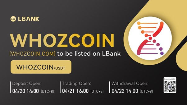 INTERNET CITY, DUBAI, Apr. 21, 2022 – LBank Exchange, a global digital asset trading platform, has listed WHOZCOIN.COM (WHOZCOIN) on April 21, 2022. For all users of LBank Exchange, the WHOZCOIN/USDT trading pair will be available for trading at 16:00 (UTC+8) on April 21, 2022.