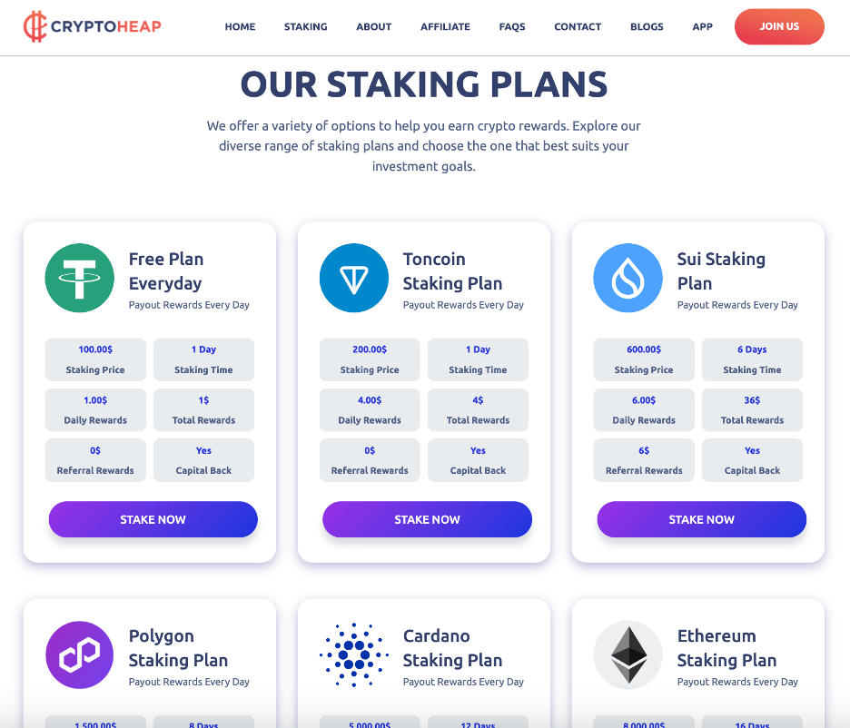 CryptoHeap has several benefits for crypto investors looking to earn staking rewards. CryptoHeap platform is easy to use for both beginners and experienced investors to stake their crypto and start earning rewards. It keeps your staked tokens safe with robust measures and hardware wallets to prevent hacks.