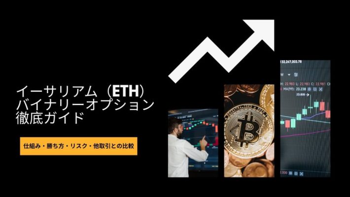 この記事では、イーサリアム×バイナリーオプションの基本、勝ち方、注意点、他の仮想通貨取引(現物・海外で提供されるレバレッジ取引・先物・オプション)との違いを分かりやすく解説します。