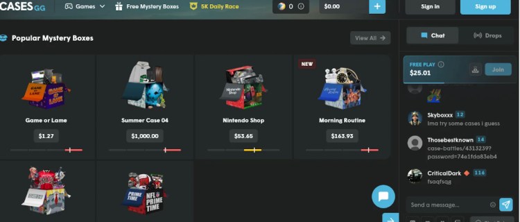 Преди да отворите кутия, можете да прегледате пълния ѝ списък с награди и шансове. Режимите „case battle“ и „upgrade“ са забавни, интерактивни функции, ако ви харесват. Въпреки това, ако просто търсите технологични кутии, сравнително е лесно да филтрирате или търсите това, което ви интересува.