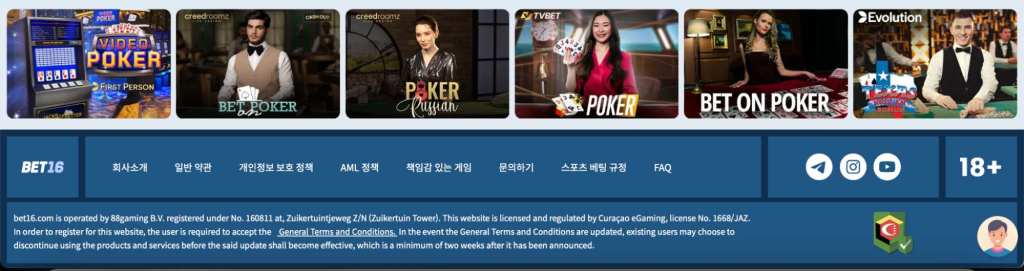 TOP5. 벳16(Bet16) – 비디오 포커 및 다양한 게임 선택지