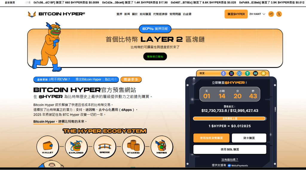 1. Bitcoin Hyper (HYPER):重新詮釋與改良的比特幣,並加入Layer 2功能