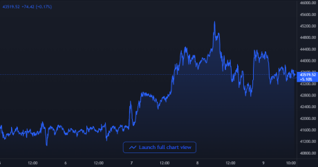 Over the past couple of weeks, Bitcoin has enjoyed some sharp uptrend. Yesterday, the price of the crypto briefly broke past the $45k mark, but it wasn’t long before the coin came back down to the current levels.