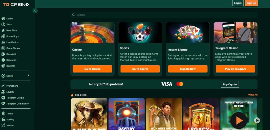 其遊戲內容涵蓋多人撲克、真人百家樂、輪盤與各類經典桌遊,並提供支援多種加密貨幣的入金方式。由於流程極簡且速度極快,TG Casino特別受到喜歡行動裝置遊戲與需要碎片時間娛樂的用戶歡迎。
