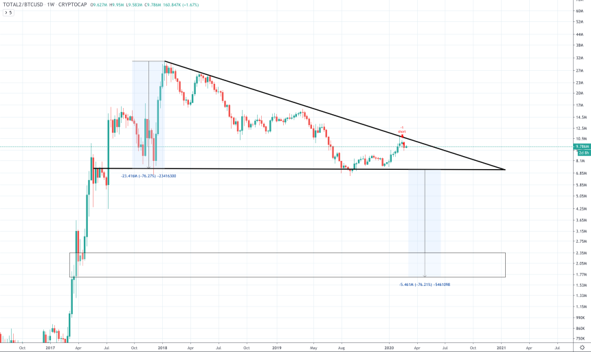Such a massive descending triangle breaking down, would have devastating implications for the altcoin space and greater crypto market.