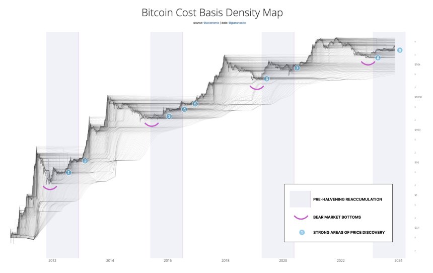 On-chain analyst Willy Woo shared a prediction on his social media channels based on the Bitcoin Cost Basis Density. The analyst investigated the BTC supply dynamics to find where the cryptocurrency could hold off the bears.