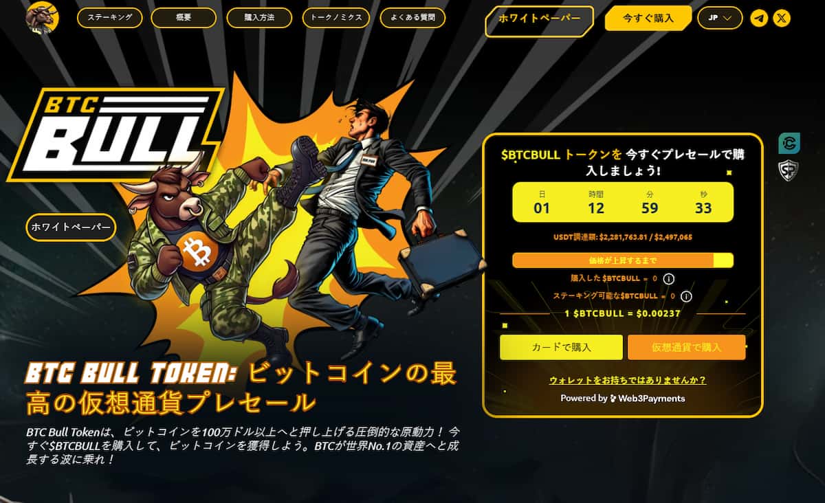 例えば、ドージコインやOFFICIAL TRUMP、Official Melania Memeなどが話題となっていますが、新たな注目銘柄としてBTC Bull Tokenが急浮上しています。