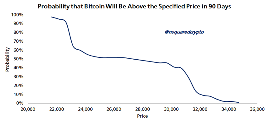 However, the crucial factor for bullish investors is the low probability of a drop below $22,000. This allows them to regain control of the 50-day and 200-day MAs in the short term, currently positioned at $27,200 and $27,000, respectively.