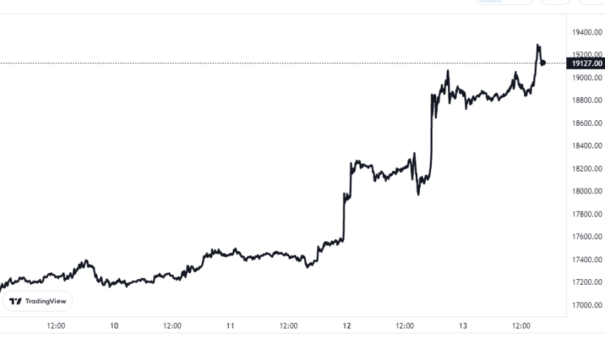 At the time of writing, BTC is trading around $19,100, up 14% in the last week.
