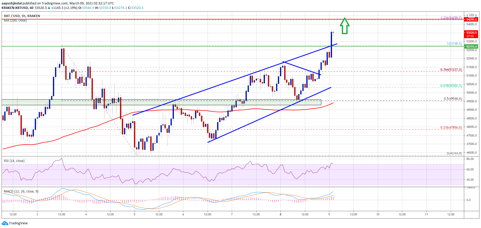 Bitcoin price rallied over 5% and it even broke the $52,000 resistance against the US Dollar. BTC is now above $53,000 and it is likely to continue higher towards $54,500 and $55,000.