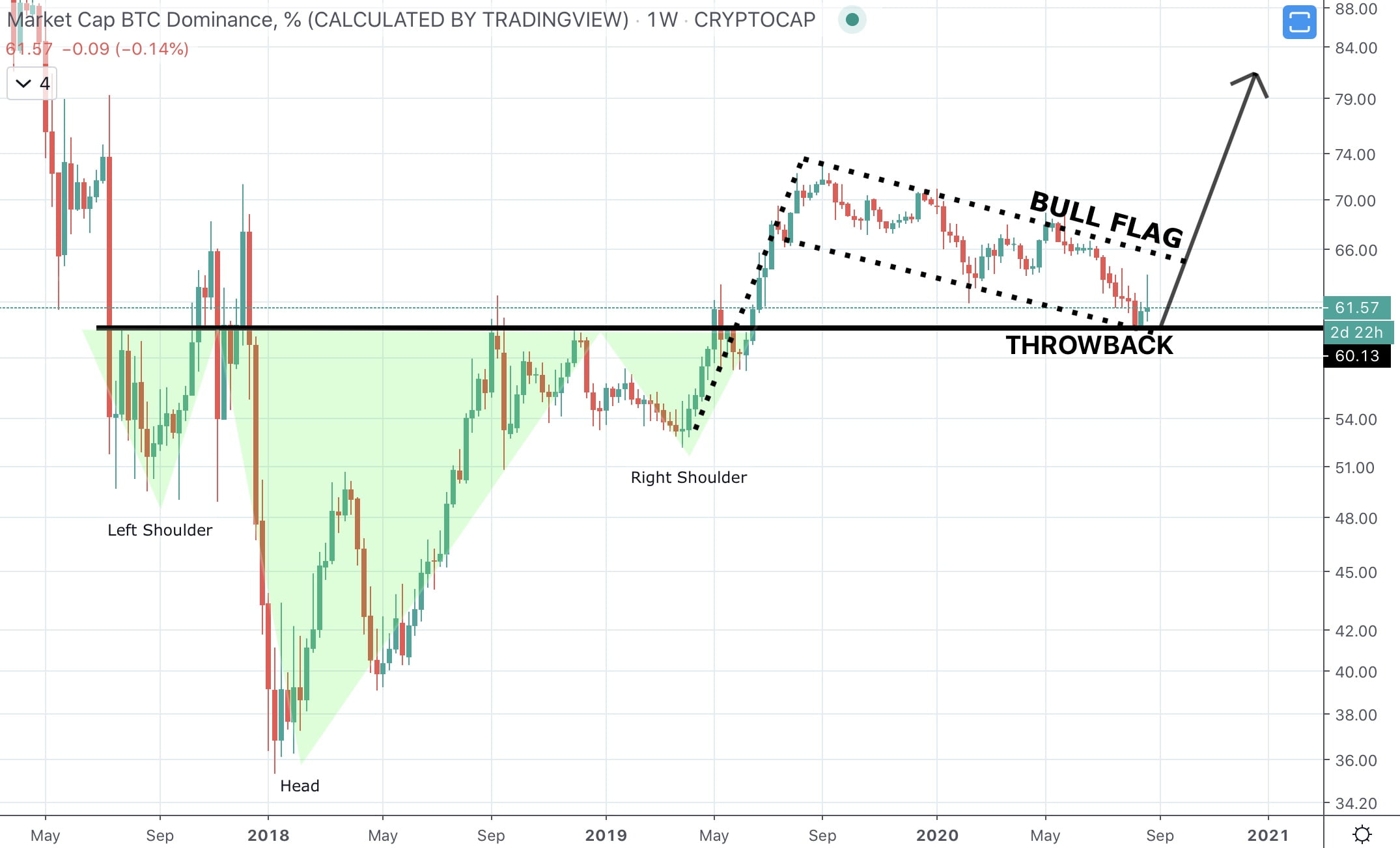 BTC.D Inverse Head and Shoulders Throwback, Bull Flag Formation | Source: TradingView