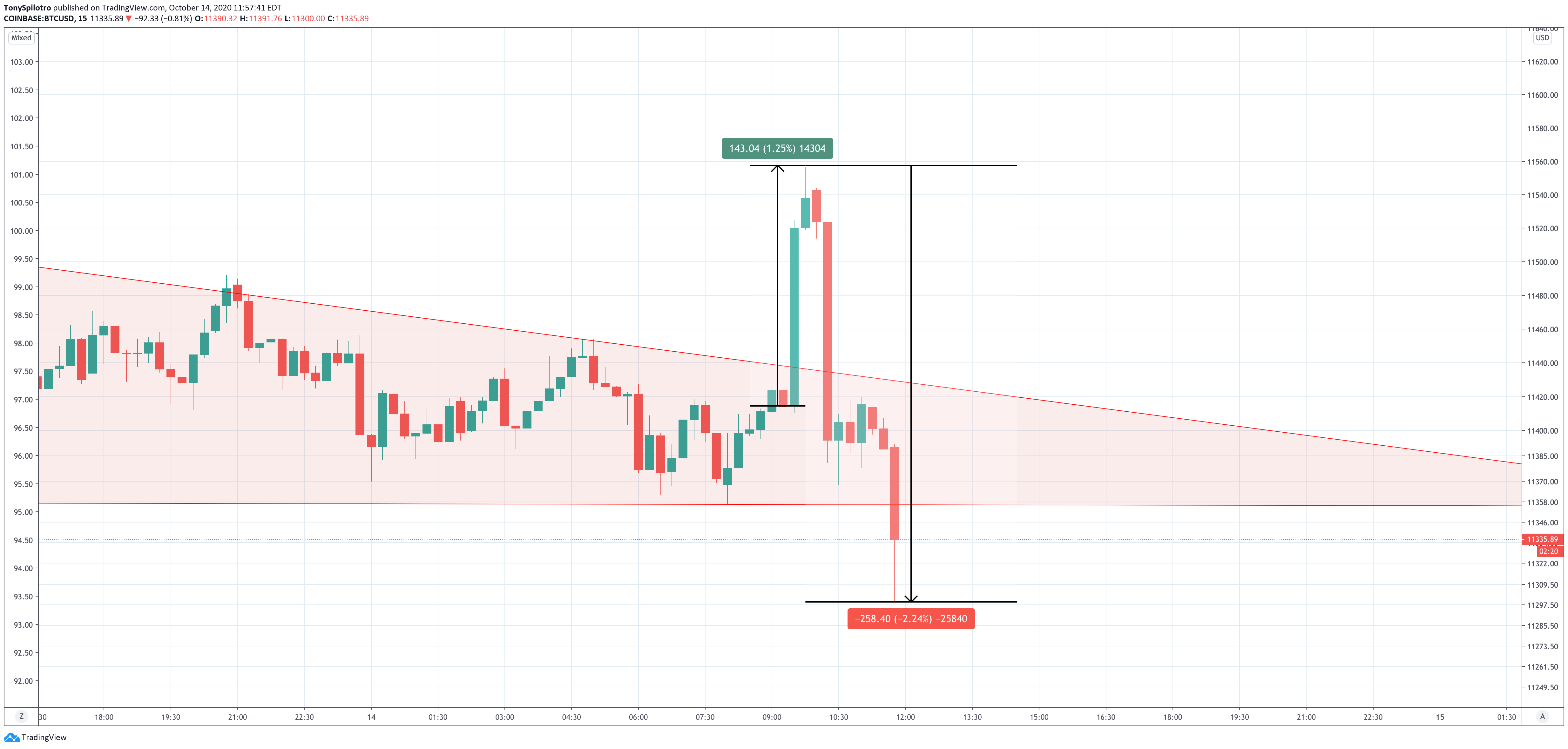 Triangle False Breakout Rejects Bulls Back Below Resistance At $11,500