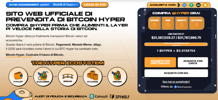 Il sentiment del mercato può essere volubile, ma i dati on-chain non mentono. Mentre BTC ed ETH si muovono lateralmente, la prevendita di Bitcoin Hyper racconta una storia di forte convinzione. Il progetto ha già attirato l’incredibile cifra di 31,3 milioni di dollari, con il suo token $HYPER attualmente scambiato a 0,0136754 dollari. Raccogliere un capitale di questo tipo in un mercato “dormiente” suggerisce che i primi sostenitori vedano qualcosa di grande all’orizzonte.