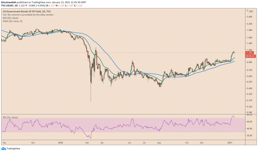 But with the yield back above 1 percent, especially as the President-elect Joe Biden commits greater government spending, along with economic growth, Bitcoin’s potential to champion another upside run looks meager short-term.