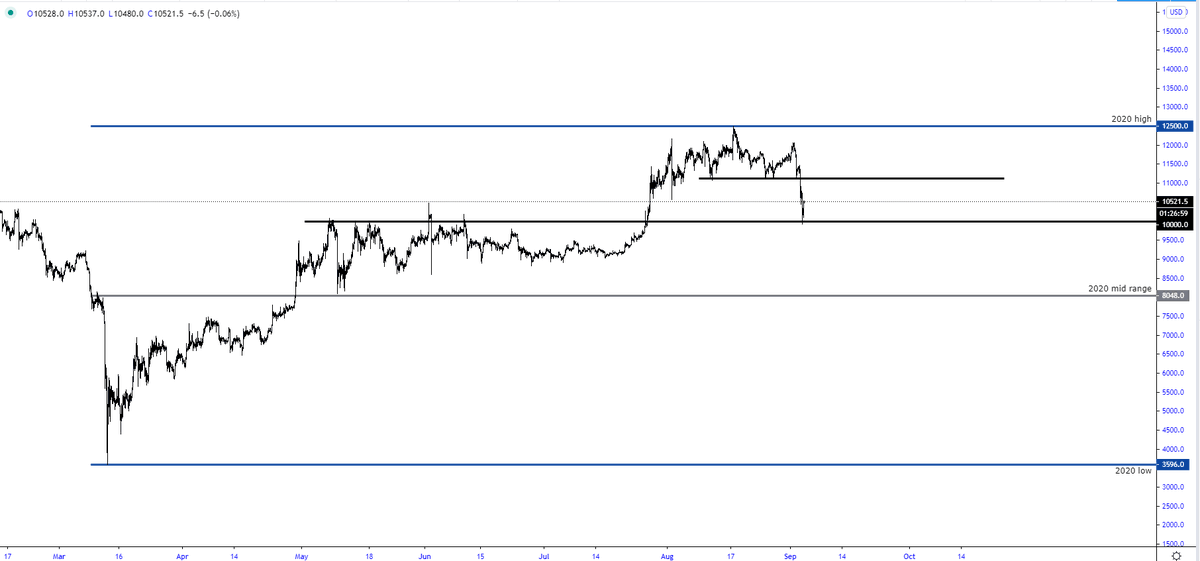 “IF we make a clean break below 10k, i think we could make a move towards 2020 mid range,” he said while pointing to the below chart.