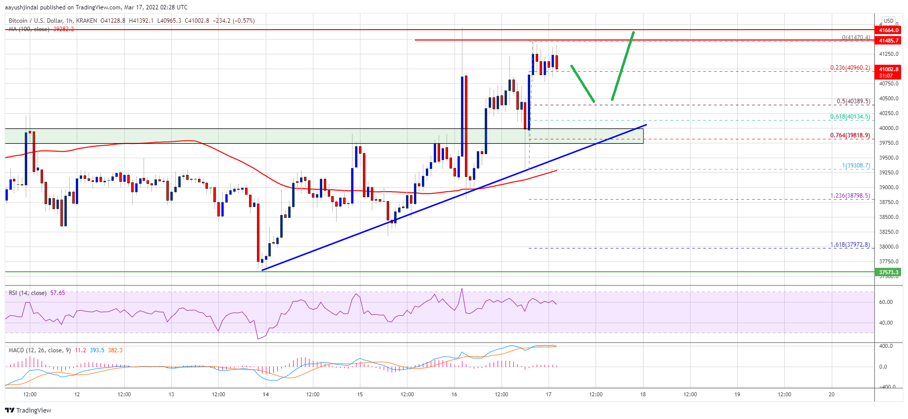 Bitcoin started a fresh increase above the $40,000 resistance against the US Dollar. BTC remains supported and might rally again above the $41,500 resistance.