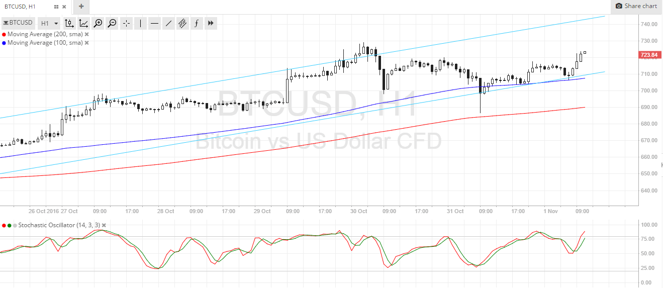 The upcoming FOMC statement could also prove to be an event risk for the financial markets, although no actual policy changes are expected. Stronger hints of a rate hike in their December meeting could reinforce dollar strength against bitcoin price, though.