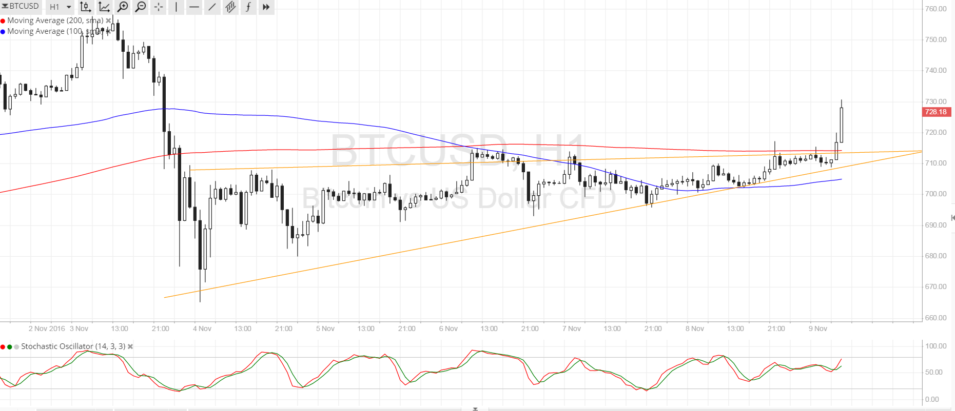 Still, it might be too early to call as the counting process could go on for a few more hours and there’s a chance for Clinton to overtake and restore calm in the financial markets, reviving gains for the dollar against bitcoin price.