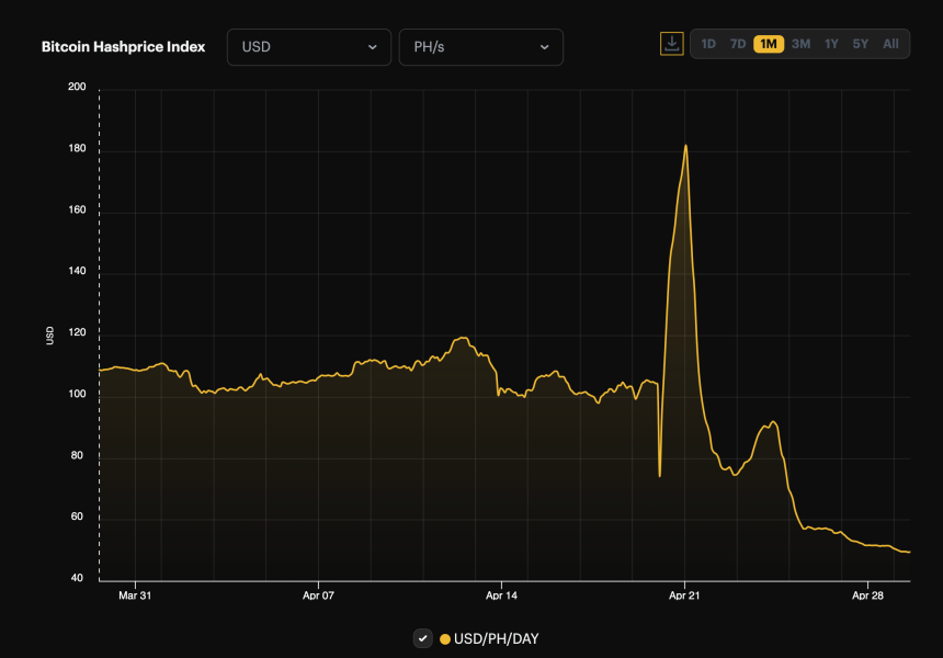 Bitcoin’s Latest Halving Sends Hash Price Into Freefall