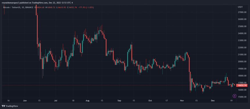 As of this writing, Bitcoin trades at $16,800 with sideways movement in the last 24 hours. On higher timeframes, the cryptocurrency records a 6% loss. Other assets in the crypto top 10 by market capitalization are moving in tandem with BTC and record losses in this period.