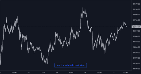 At the time of writing, Bitcoin’s price floats around $30.4k, down 3% in the last seven days. Over the past month, the crypto has lost 24% in value.