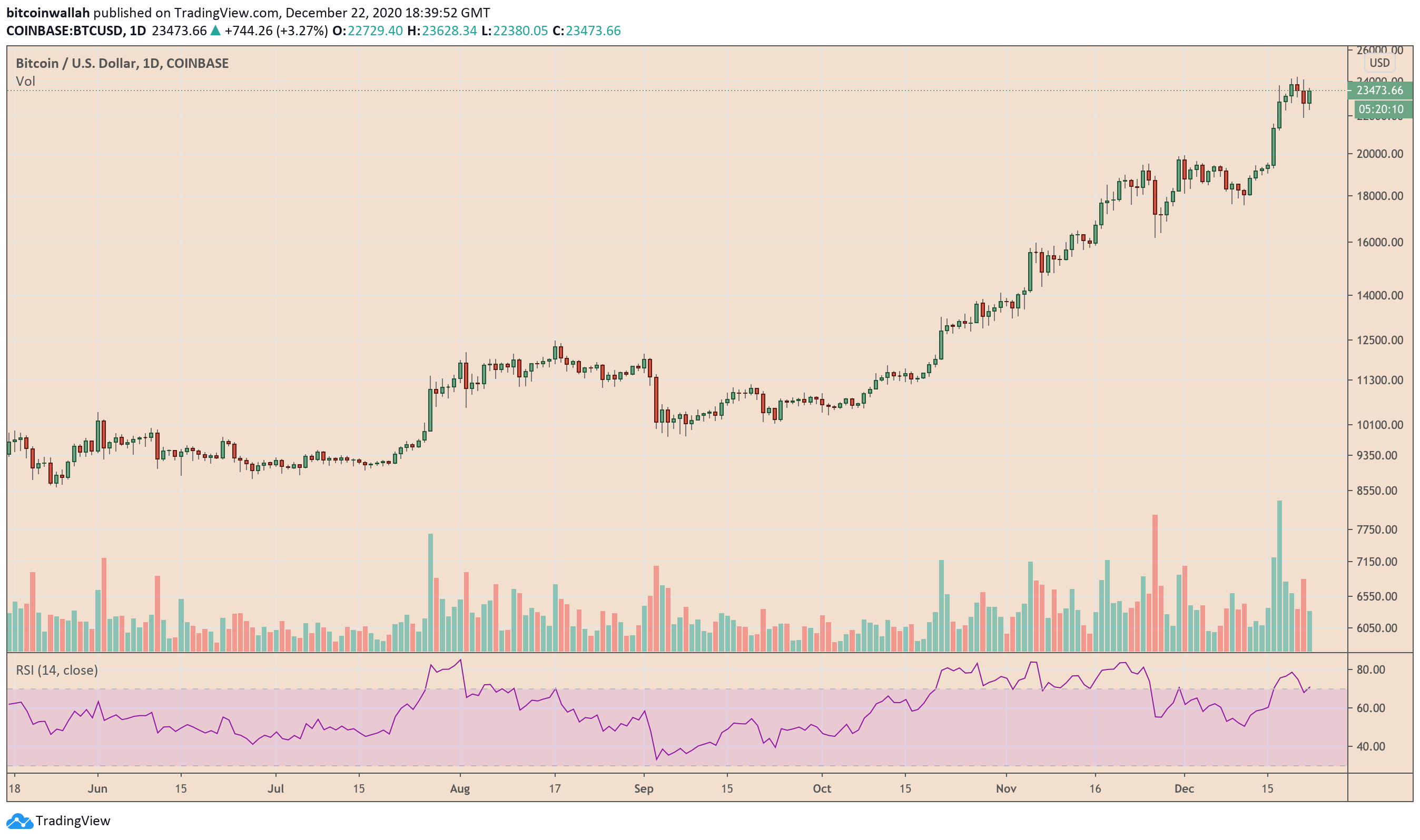 Bitcoin price is trading near its all-time high of $24,300. Source: BTCUSD on TradingView.com