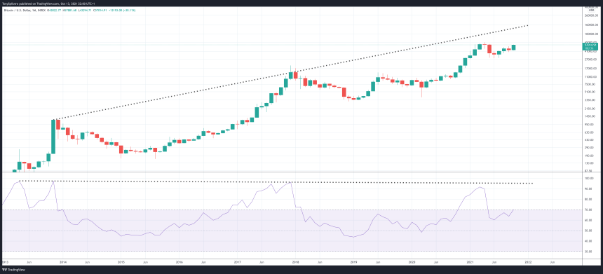 Could BTC top out at the descending RSI trend line? | Source: BTCUSD Index on TradingView.com