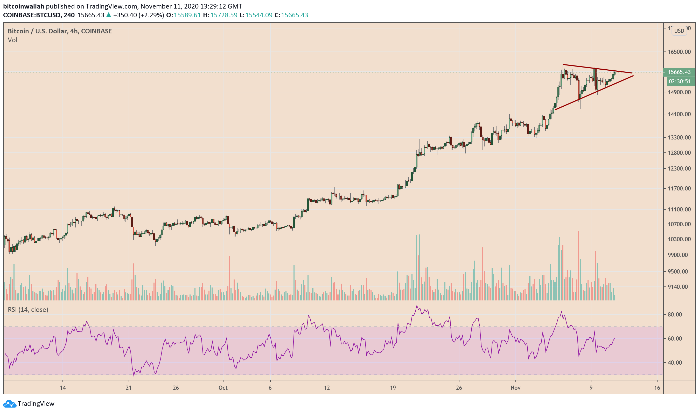 Bitcoin continues heading higher towards $16K. Source: BTCUSD on TradingView.com