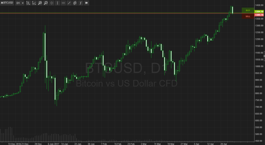 Bitcoin fell during the day on Friday, forming a very negative candle for the session. It looks as if the $1450 level is going to offer significant resistance. A breakdown below the bottom of the candle should send this market looking for support below. The $1350 level underneath could be a place where buyers return. This is still a very strong market, just that it needed to pull back a little bit to build up more momentum.