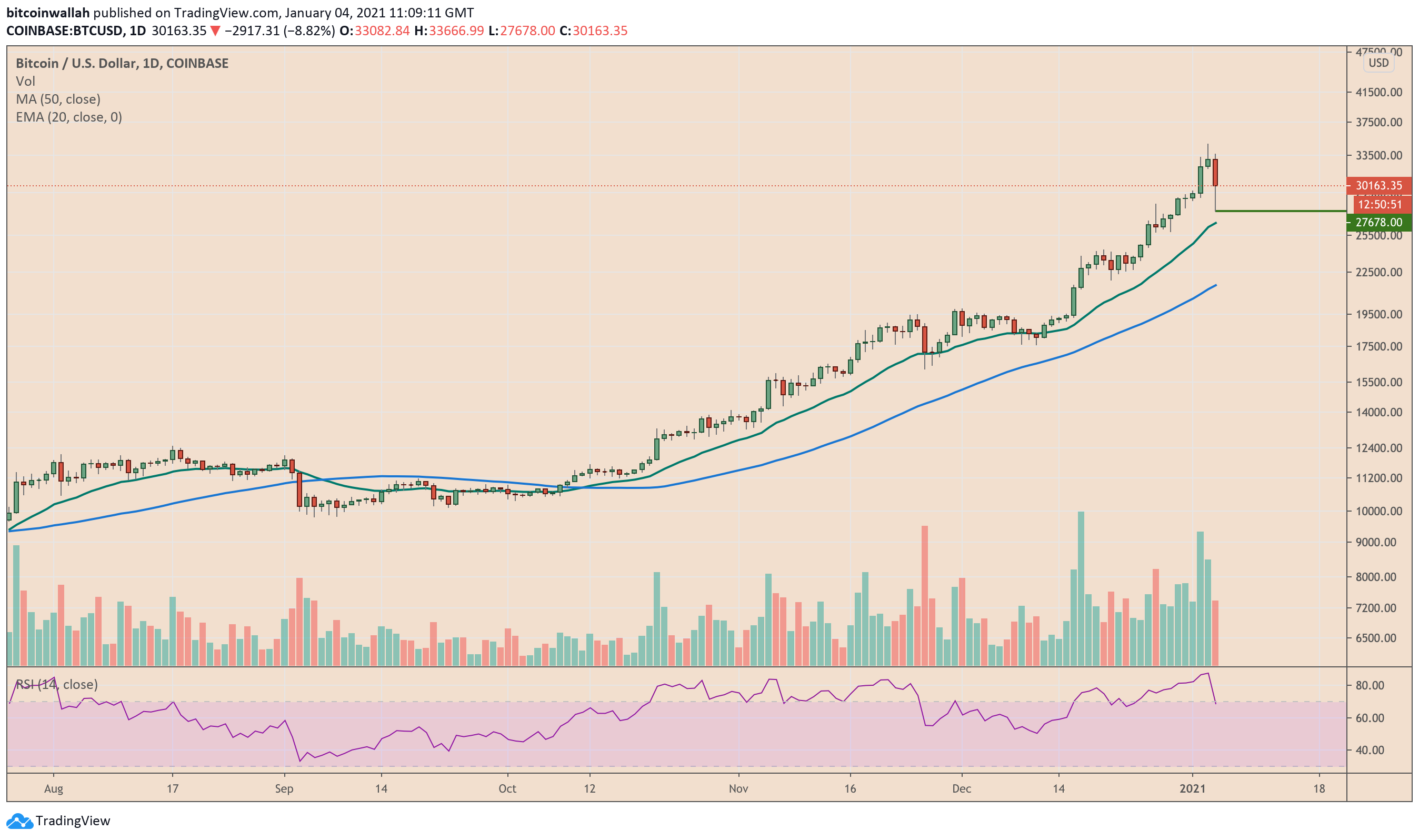 Spot traders remained long-term bullish on Bitcoin owing to its increasing prominence as a hedging asset among mainstream financial institutions and corporations. The one after November 25, for instance, saw the BTC/USD exchange rate climbing by as much as 114 percent to settle a record high of $34,810.