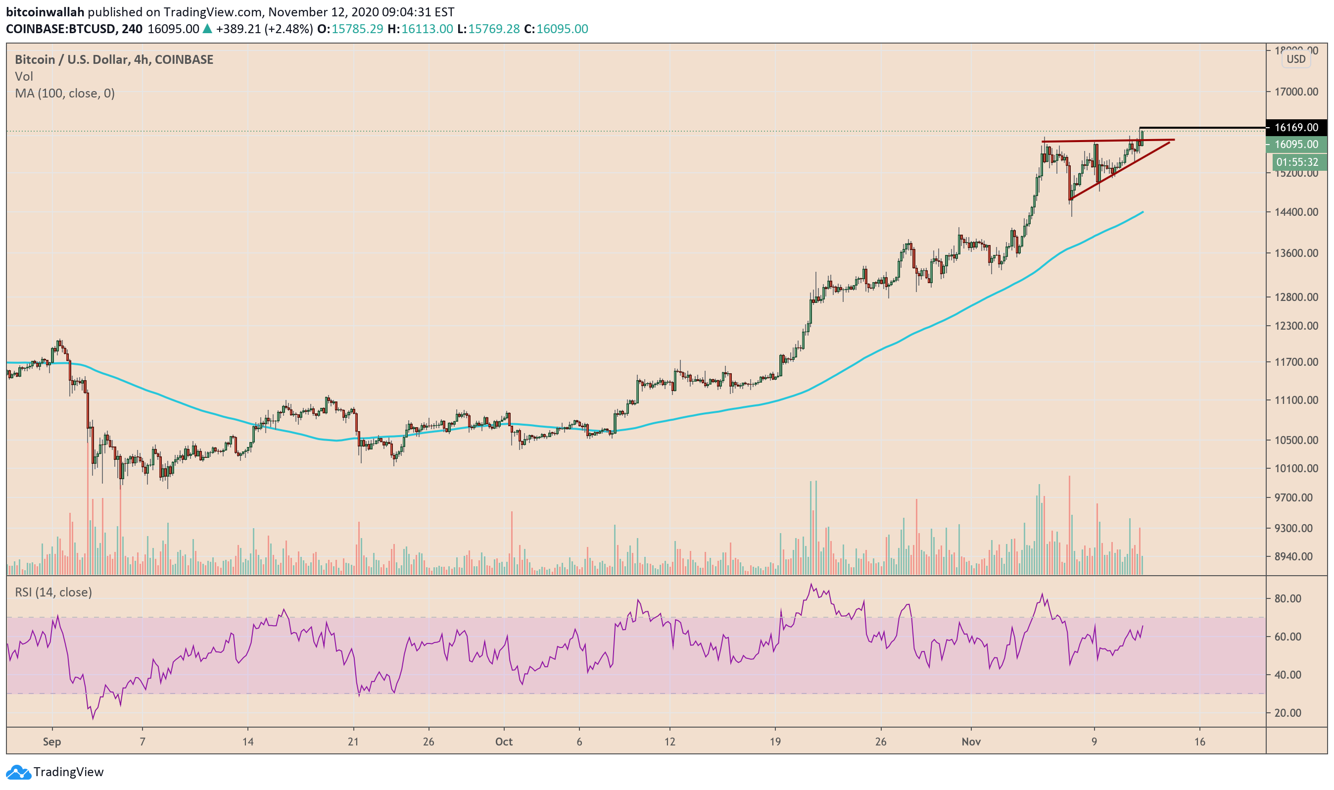Bitcoin hit a bull’s eye ahead of the New York opening bell Thursday as its price closed above $16,000.