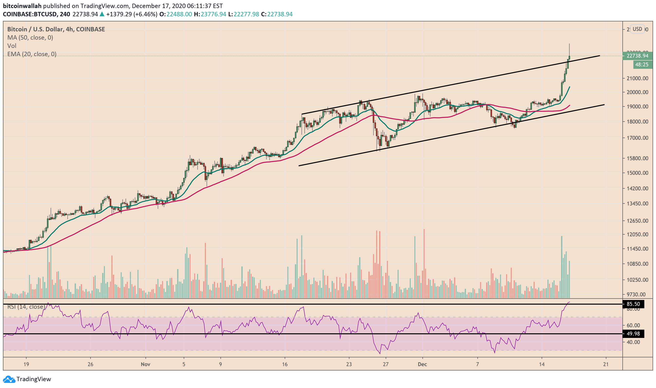 Bitcoin corrects lower from its record high at $23,776. Source: BTCUSD on TradingView.com