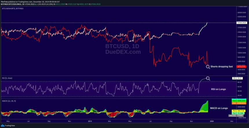 Some analysts conclude that the metric is meaningless, and Bitfinex doesn’t move the market the same way BitMEX does, or that because Bifinex uses low leverage, these traders are less at risk of a squeeze of any type or liquidation.