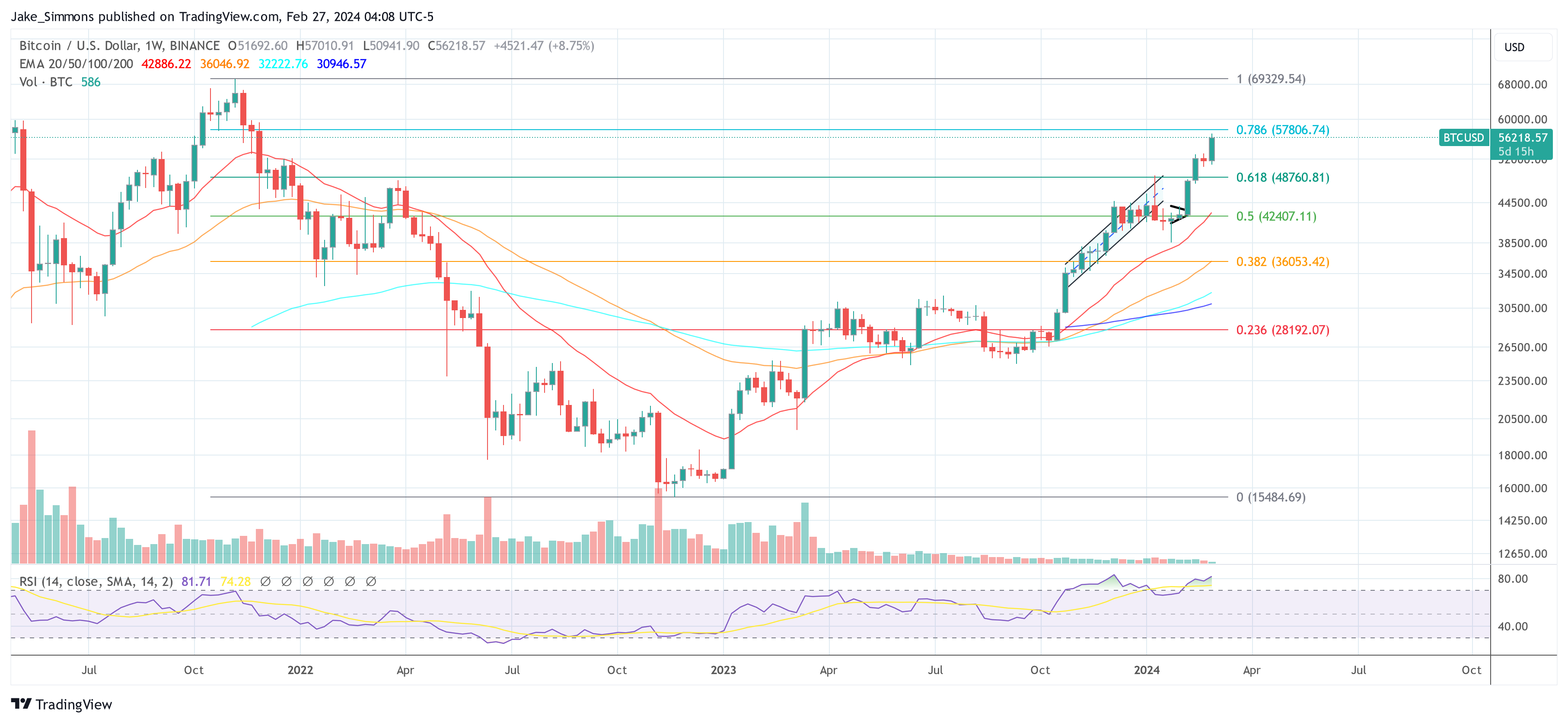 Further reinforcing Bitwise’s bullish outlook, Ryan Rasmussen, a researcher at the firm, provided a tangible price target during a Yahoo Finance interview. He affirmed, “We think that Bitcoin will certainly set all-time highs in 2024…We still stand by that prediction. […] That previous price is around $69,000, but we think it won’t stop there, we will see at least a 10-15% bump over the all-time high […] That would take us to […] $88,000, and I am still sticking by that with all the excitement in the market.”