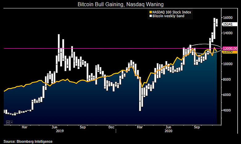 Bitcoin-Nasdaq correlation. Source: Bloomberg Intelligence