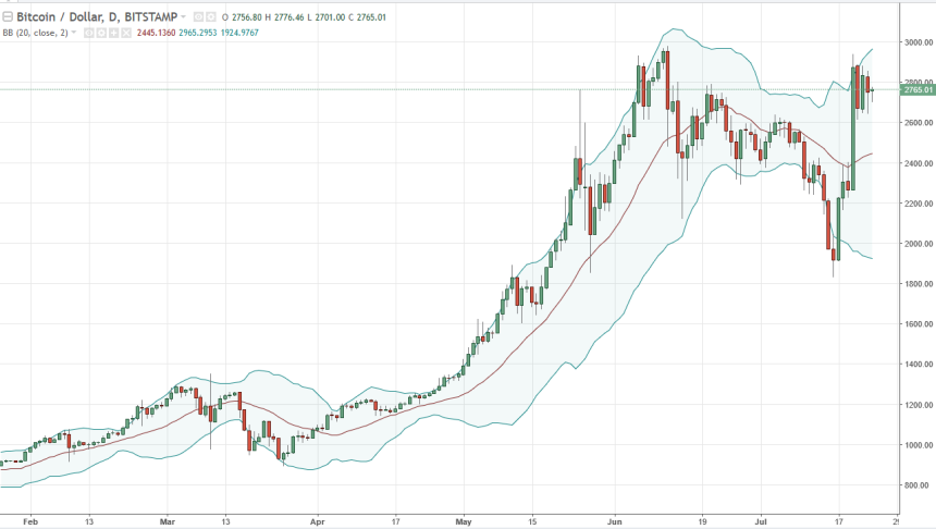 Bitcoin initially fell against the US dollar and early Monday trading, but turned around to show signs of resiliency yet again. It appears that we are currently consolidating, but the market looks very likely to continue to grind its way towards the $3000 level. Pullbacks on short-term charts should continue to offer buying opportunities throughout the day.