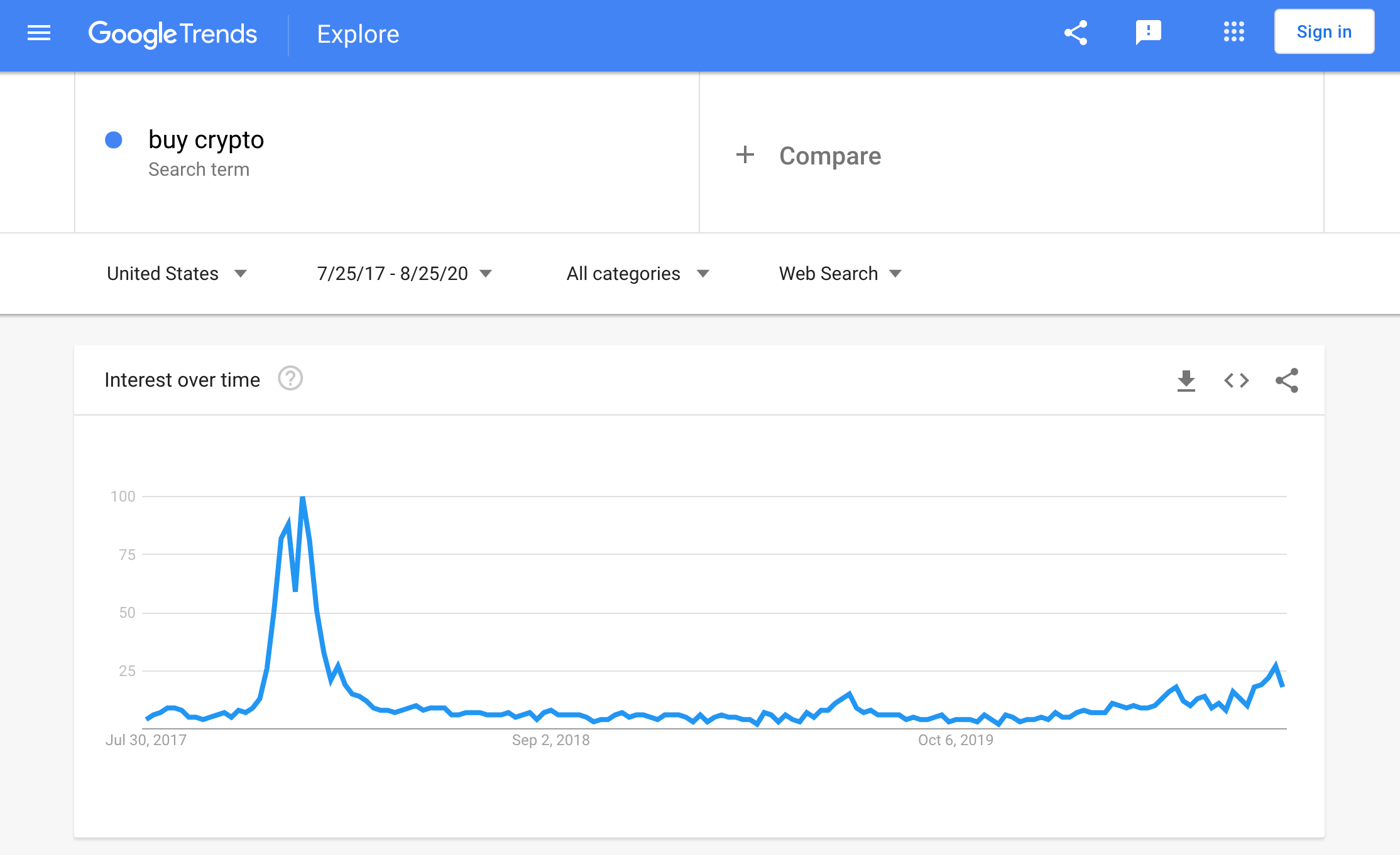 “Buy Crypto” Search Terms Revisit Highest Level Since 2017 Bubble