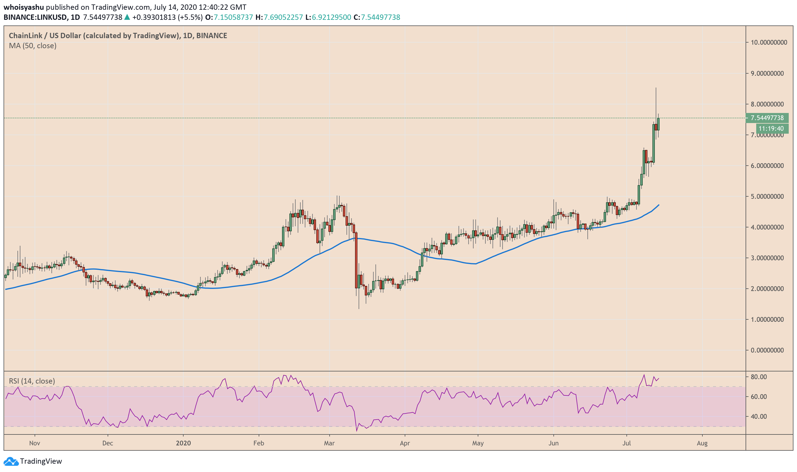 Chainlink's LINK topped at $8.53 as on July 13. Source: TradingView.com