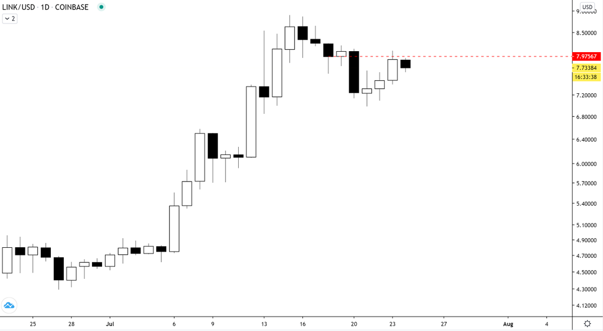 Earlier this month, Chainlink was able to set fresh all-time highs at $8.60. The surge here was quite intense, although it ultimately proved to be unsustainable.