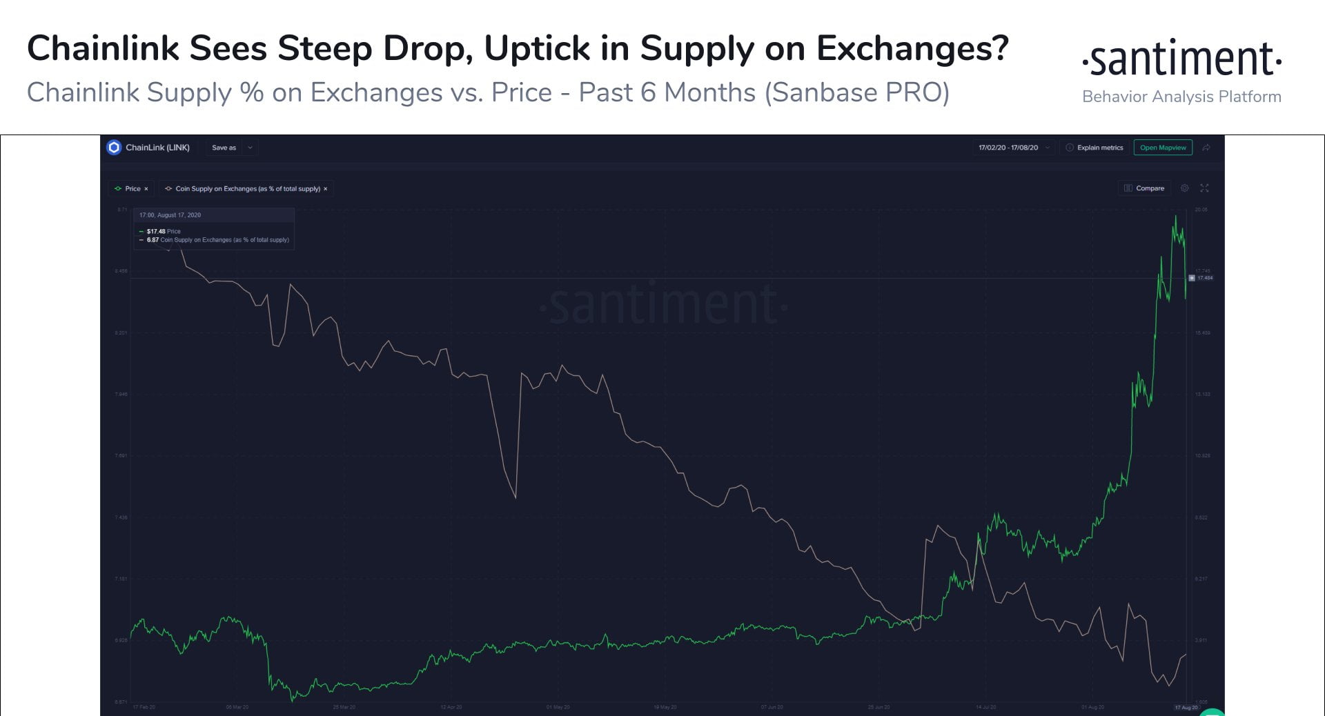 “Notable is the 6-month drop of the percentage of Chainlink tokens on exchanges, declining from 8.6% to 6.9% during this timeframe. This supports the narrative that the LINK army just isn’t selling, and more and more of the supply is being moved to offline wallets.”